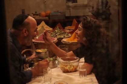 The milieu, though possibly not the plot, of The Women’s Balcony is based on screenwriter Shlomit Nehama’s upbringing. Her knowledge of and affection for the ways of her Orthodox Jerusalem community make it easy for viewers to become immersed in and identify with a culture they may never have seen before. What is particular to this community—kissing affixed to door jambs, using a non-Jew to perform tasks that Jews are prohibited from doing on the sabbath, trying to form a minyan (10 men) needed to hold a religious service—is educational for non-Jewish viewers and stirs familiarity and affection in Jewish audiences. What is universal—the easy love between Zion and Ettie, the exasperation of Ettie’s unmarried niece Yaffa (Yafit Asulin) at the constant nudges to find a husband, the bar mitzvah boy who thinks the collapse was his fault for not learning his torah portion and hoping something would prevent his embarrassment in front of the whole community—brings us all into communion with their humanness.