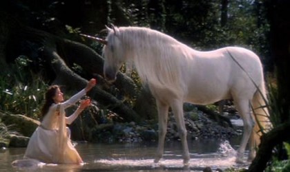 Jack is an interesting character. Looking like Peter Pan (traditionally played by a woman), he is mortal, but has crossed over into the semi-deified world. Gump (David Bennent, the wonderful star of The Tin Drum), who seems to be the lead elf, has accepted him completely as a forest being, and let Jack in on all the forests’ secrets, including the location of the unicorns and, when he must fight Darkness, the cache of armor and weaponry he will need for his hero’s quest. He berates Jack for letting Lily touch the sacred unicorn, but recognizes that Jack’s love trumps such rules. In this, Legend is much more forgiving than the deity who expelled Adam and Eve from the Garden of Eden.