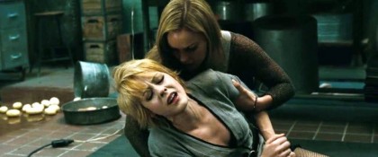 Sucker Punch immediately suggests an uncommon filmic aspiration with an opening prologue that’s a virtual silent film. Snyder offers gargantuan visuals to depict a tale set in a mythically gothic 1950s of two doomed sisters caught in a house with a sleazy patriarch, revealed later to be a wicked stepfather (now there’s an inversion for you), who has murdered their mother and successfully passed it off as a ticket to possessing the two girls. Evoking D. W. Griffith by way of James Whale and Robert Aldrich, Snyder cuts between the stepfather’s (Gerard Plunkett) attempts to break in the door of the cupboard the younger sister (Frederique de Raucourt) has locked herself in with the obvious intent of molesting her. The elder sister (Emily Browning) escapes from the room she’s been locked in, finds a gun, and tries to shoot her stepfather—except that she’s not really made of killer stuff. Her wild shots kill her sister instead, and she can’t finish off the monster. Before the police can investigate fully, the stepfather has the remaining girl placed in an insane asylum and bribes an orderly, Blue Jones (Oscar Isaac), to make sure she’s lobotomised to ensure she never spills the beans on him.