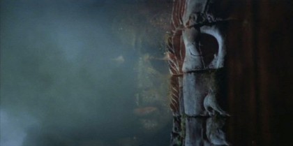 Equally memorable is the kinetic, late appearance by Dennis Hopper as a photojournalist trapped in Kurtz’s compound, an emissary of both mass media and countercultural impulses, and embodying every exposed nerve of both. Hopper’s own spiral into hophead exile after The Last Movie (1971) was perhaps one Coppola wanted to channel, and certainly no one embodied the crack-up of ’60s idealism more than the director of Easy Rider. His character stands as a kind of priest/court jester for the titanic Kurtz, rambling with incoherent urgency in his efforts to communicate both Kurtz’s greatness and his depravity, as if he’s found a kind of guru who scares the shit out of him. Not coincidentally, the Manson murders are invoked during the voyage upriver as Kurtz’s ignoble stateside avatar. In finally meeting Kurtz, Willard is ritually washed by his followers, who include Colby (Scott Glenn), another soldier sent on the same mission but seduced into the mesmerised fold, and presented as a trussed prisoner whom Kurtz regales with mysterious anecdotes: his description of having once sailed down a river past a place where “heaven fell to the earth in the form of gardenias” suggests that somewhere is a natural paradise to mirror this stygian abode. Kurtz is glimpsed mostly as a saurian beast in the shadows, running a hand over his bald head like a tarantula crawling on a melon, a creature of strange discursions and secret intentions that may well have proven to be so much quackery.