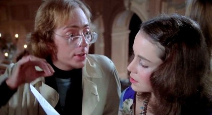 De Palma’s version of Leroux’s tragic Phantom is Winslow Leach, played by William Finley, a gangly, adaptable character actor who appears in much of De Palma’s early work, and here takes the lead for the first and last time. His Leach bears a distinct resemblance to Warren Zevon. Hapless, dowdy, and painfully naïve in his life, Leach’s superlative talents as a musician serve only to destroy him. Hired to play piano during breaks in Swan’s shows, Leach is overheard by the impresario, who, impressed, orders his cruder flunky Philbin (George Memmoli) to get hold of Leach’s music. Winslow is reluctant to part with his songs, which are only portions of a magnum opus based on the Faust legend, but agrees on the promise that Swan wants to produce the record. Winslow tries to see Swan at his Death Records office and then his home. There he meets a young singer, Phoenix (Jessica Harper), practising for an audition using one of the Faust songs, and Winslow is dazzled. Winslow is quickly ejected when discovered, and so is Phoenix, when finds out the audition is just the nightly intake for Swan’s harem of groupies and refuses. Winslow, on the other hand, dresses up and joins the concubines and manages to meet Swan, but he promptly has him plucked out, beaten up, and then set up by flunky cops on a drugs charge. In jail, Winslow has his teeth removed and replaced by metal ones as a part of a perverse experiment in sanitation he’s forced into, and when he hears one of Swan’s stars singing his songs on the radio, he goes berserk, escapes, and breaks into Death Records. While attempting to sabotage the production machinery, Winslow is caught in a record press and burns his face. He stumbles outside and falls into the harbour, and is presumed to have drowned.