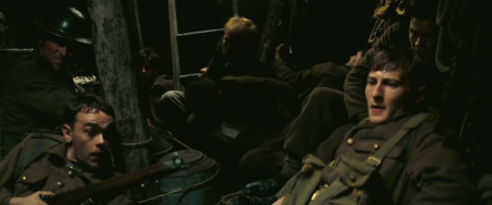Nolan makes some effort to invest some complexity in his portrait of the situation, particularly in the scenes on the beached boat where Tommy, Gibson, and Alex have taken shelter with a gang of similarly unmoored men from the Highlander regiment. The young soldiers quickly reveal unreasoning ferocity in the face of blind terror. As the boat starts to flood with the rising tide, they turn on each-other. One soldier (Brian Vernel) gets it in his head, in Nolan’s efforts to generate a moral crisis, that they need to throw someone overboard to lighten the boat, in spite of the fact they’re on a sizeable craft where such an action would be utterly useless: they pick out Gibson in his silence as the odd man out, forcing the man to admit that he’s actually a French soldier who’s put on an English uniform to make his escape, his silence a ploy rather than a manifestation of shellshock. Tommy still bleatingly defends him: “It’s not fair.” This sequence reminded me of the similar moral quandary of the two bomb triggers Nolan deployed in The Dark Knight (2008), and it’s just as wince-inducing in its clumsiness as a story device and facetious as a depiction of the panicky idiot lurking under the surface of all men. Even as jittery and desperate as the men here are supposed to be, no-one in his right mind could possibly think through one man off so large a boat is going to stop it sinking. Here Nolan reminded me of some other films with blind spots in this regard, like Joseph Losey’s King & Country (1964), proposing to stick up for the little man in the face of great men’s games but ironically, in portraying that little man as gallant and those others as bestial primitives. When Nagisa Oshima cast David Bowie in his POW drama Merry Christmas Mr Lawrence (1983), it was to exploit a pop star’s strange and alien beauty and use it ironically, to make him emissary of the human race in a way a Byzantine religious artist might have appreciated, as a vision of the rarefied soul. Nolan casts Styles, likewise a pop star foraying into acting, and buries him in the avalanche of lookalikes, a nobody in a sea of nobodies.