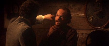 The second half of the film resolves into a slightly more conventional narrative form and offers a variation on a hallowed western movie plot, as McCabe encounters the emissaries of Harrison Shaughnessy and then must cope with the company’s hired guns. Butler (Millais), Kid (Manfred Schulz), and Breed (Jace Van Der Veen), are three cast-iron killers who intimidate the locals whilst awaiting their moment, whilst McCabe gears up to take them on after realising there’s no way to buy them off or gain the law’s aid. Altman’s history isn’t written in ritualised square-offs and chain-lightning gunfights but in shots in the back and battles of wits, hidden weapons and concealed positions, in outmatched heroes and villains who like to gun down hapless strangers. Altman offers his take on the infamous scene in George Stevens’ Shane (1953) where Jack Palance’s thug guns down Elisha Cook’s farmer. Here the affable, horny cowboy (Keith Carradine) McCabe initially mistook for a goon but who’s been happily rogering all the girls in Miller’s brothel is accosted by the Kid, at first bullied and then wheedled into showing his gun, a gesture the Kid uses as an excuse to shoot him down. Altman’s cold dissection of Stevens’ model swaps black-clad menace who gives his foe a slight chance for a baby-faced psychopath who could also be a schoolyard bully, the lowest form of life in Altman’s book who also happens to be everywhere, who gives none at all.