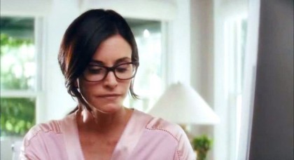 However, Scream 4 backs off from this almost immediately; Craven and Williamson out themselves as fundamentally old-school guys, for whom the brute immediacy of blood and guts subverts and offsets such trickery, not the other way around. With killers more intent on doing a reboot than a sequel, the stage is again Woodsboro, the bland small town where Scream unfolded. Stab 7, we soon find, is actually being watched by two more trim young missies, Jenny and Marnie (Aimee Teegarden and Brittany Robertson), and they really are attacked and brutally killed by a new Ghostface. This coincides with Sidney Prescott’s (Neve Campbell) return to Woodsboro on a book-signing tour, having turned her earlier battles with evil into Oprah-ready confessional-therapeutic literature. Her appearance puts her back in the orbit of old partners in crime-fighting Dewey Riley (David Arquette), now Woodsboro’s sheriff, and his wife Gale (Courtney Cox). Edging into middle age is gnawing at them all of, as Gale has no new grist for her pulp-smith mill, Dewey is being courted by his worshipful deputy Judy Hicks (Marley Shelton), and in spite of her official triumph and platitudes of healing, Sidney still carries an aura of doom and regret with her everywhere she goes.