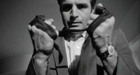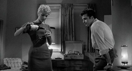 But like many noir killers, Claude has an undercurrent of crazy—which Marc and George comment upon frequently—particularly psychosexual. He goes ballistic when a waiter (Joseph Mell) brings in his breakfast tray with a lipstick-stained coffee cup. After chewing Harry out for taking no pride in his work and assuring him that he will never get ahead with his slovenly attitude, Claude flips $5 at him as he goes out the door to fetch a fresh cup. Later, when Claude receives a call girl (Kathie Browne) into his room—it’s hard to imagine him having sex with a woman—he admonishes her to wipe the lipstick off her mouth and refuses to kiss her when he ends up hastily ushering her out of his room.