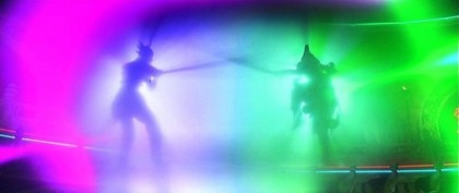 General audiences have often tended to be uneasy when action movies move too much toward the comedic—witness the way Sam Raimi and Steven Spielberg had new ones torn for them for making the later Spider-Man and Indiana Jones entries too funny. Big Trouble’s blending of farce and fury took studio execs by surprise and the 20th Century Fox chief demanded that a more portentous prologue be attached to the film to make Jack, in particular, seem more worthy (though that prologue’s a great little bit in itself). The often deliriously funny vignettes revolve around gags that push to outer edges of mockery, like that in which Jack advises his fellows in escaping the lair, “Follow the leader,” only to pull back a door and be confronted with a gang of enemies, forcing Jack to close the door again and amend his instructions. Or when, with gun jammed and his knife fumbled, Jack has to retreat from a brawl, then returns with a swashbuckling yell only to find Wang’s lain waste to the enemy horde. Or, at the cusp of the great final battle, Jack fires his gun in the air in a warlike moment of exaltation only to have masonry fall on his head and knock him unconscious. Or when he kisses Gracie and then confronts Lo Pan and Thunder with a mouth smeared in her lipstick. But there’s also action that’s simultaneously hilarious and brilliant, like the lengthy duel Wang has with Rain, punctuated by the eyebrow-waggle Wang gives in taunting Rain, who’s amazed at his mortal opponent’s abilities under the influence of Egg Shen’s magic potion.