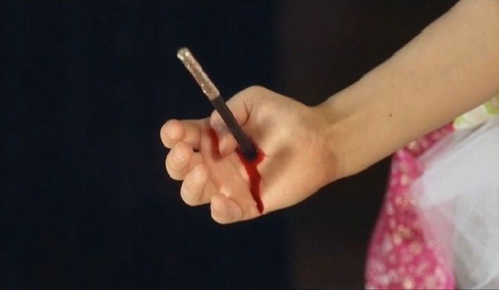 The film moves immediately to a 6-year-old Anastasia (Carla Besnaïnou) who strains at the restrictions of being a girl and even proclaims she is really a boy named Vladimir. Perhaps in a fitting punishment for rejecting her gender, she is stricken with the spindle prick while dressed in a ridiculous pink kimono over a short, lacey tutu as she prepares to dance en pointe among a flock of similarly garbed girls. She finds herself in an underground cavern filled with skeletons and ruled over by a boil-covered man who says he is a reflection of her rotting flesh. She wins her way out of the cavern by bowling down some bones and goes into the wider world.