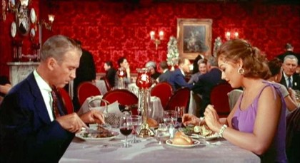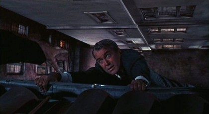 When Scottie takes Judy out to dinner for the first time, returning to the restaurant where he first saw Madeleine to more deeply test the accuracy of Judy’s facsimile of his lost love, the way she gauchely drains her liquor shows she is both aware of and signals her gaucheness and communicates a subtle but lethal observation: Judy can no longer be just Judy because it entails another kind of acting, playing up the pretence of being the shopgirl from the remote wastes of the Midwest, even as Judy longs to be loved by Scottie in and for herself. Now, she will always be two people, a fact finally elucidated as she becomes Madeleine again and all her mannerisms shift. Her decision to risk being found out goes beyond simple willingness to risk her life for her love, for her character has been left as permanently fragmented as Scottie’s. The final revelation that Judy is, in a peculiar way, innocent of murder even though she is complicit, gives the finale its last ingredient for tragedy. Her final rush from Scottie’s arms to ascend the fateful church steeple was a last-minute and hopeless tilt at saving them both by saving the “real” Madeleine, who Elster has already killed before he hurls her body away.
