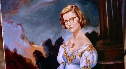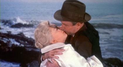 Which brings me to the final coup of the film: the ride in the car when Lina fears that Johnny will somehow push her over the precipice. (As a friend of mine commented, the “chaser” and self-proclaimed “chase-ee” occupy the same space and the same shot here, quite cozily, even though one of them is terrified out of her wits). When it comes to these sweeping vistas – the top of the hill, the steep drop to the sea below, the winding roads – Lina doesn’t require her glasses. She isn’t called upon to read anything, though she does, insistently and maniacally. She spins her own narrative parallel to the one that is being played out, reading the various signs her life with Johnny have thrown at her. The original ending, of course, revealed that Lina’s made-up narrative coincided perfectly with the “real-life” narrative, that Johnnie was indeed a merry ladykiller. Although the ending of Suspicion as we know it today is a let-down, I’d suggest that in one (albeit feeble) way, it maintains a marvelous spring of tension: it carries Lina’s obsessive “reading” to the point where she manages, for a few moments, to force the “real life” story to coincide with the one in her head. She actually almost falls out of the car, with no help from Johnny.