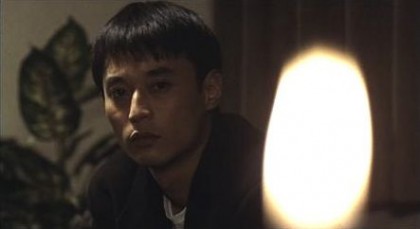 It is Mamiya’s conviction that most people don’t know themselves, the many selves hidden under the surface, the duality of their generous and vicious impulses. He considers Takabe extraordinary, like himself, for recognizing the split in himself—trying to be a loving husband while seeing the worst in human nature on a daily basis. The encounters Takabe has with Mamiya create convulsions of emotion in him, signaled not only by his violent outbursts toward Mamiya but also toward some of his colleagues; in fact, when Takabe tries to turn the tables on Mamiya by forcing him to look at his own lighter while incarcerated, a vision of a rain-collapsing ceiling overwhelms Takabe, and the lighter goes out. It appears to have been put out by the rain water, but my guess is that while Takabe was having the visions, Mamiya merely blew the lighter out. But, of course, this wouldn’t be a horror story if we didn’t give ourselves over to wondering if the strange sights on screen are real or imaginary.