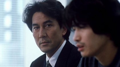 Kurosawa’s camerawork is beyond good. He scouted locations in and around Tokyo that reek of decay, giving us a fair approximation of a haunted house in the penultimate scene where the final showdown between Takabe and Mamiya takes place. He combines handheld work with static long shots of great beauty and atmosphere. He knows how to create tension by considering the images outside the frame that haunt our imagination, for example, having Sakuma enter Mamiya’s cell, which has a short wall hiding the toilet area in which Mamiya is standing. We don’t see the prisoner, but we know what he’s capable of, and the fear of actually looking at him infuses this scene powerfully. In a later scene, we see one handcuff hanging from a pipe, and the story a cop tells Takabe about it creates the image of the body that had been attached to it in our minds in an uncomfortable parallel to the way Mamiya was able to create images in the minds of his victims. Indeed, Mamiya is rather like a filmmaker, bringing us under his spell, finding our triggers, conjuring images through exposition and suggestion.