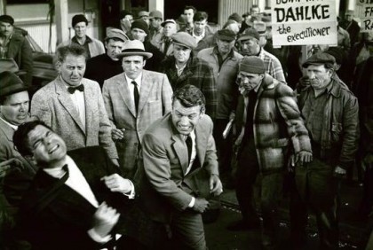 Egan is a bit pallid as our central character—Laven reportedly wanted Robert Mitchum in the role—but he is believable as a straight arrow dedicated to upholding the law. When he gets involved in a wildcat strike on the docks, he forgets himself and behaves as he did when at his father’s side on the picket lines, slugging it out with the hired muscle trucked in to quell the protest. It would have been nice to see more of that side of Keating from a dramatic point of view, though I imagine this fight was a script embellishment, not reality.
