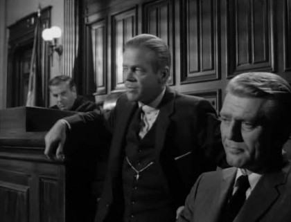 Slaughter is a police procedural in The Naked City mold that has more in common with the politically conscious films of the 1930s than with the postwar fatalism that informs the thoroughly pessimistic outlook of many classic noir films. Keating, the son of a union coal miner, is a crusader for justice for a man who dared to stand up to the mob and paid the ultimate price, but he’s strictly by the book, not shadowed by a painfully guilty past. Vosnick, a trusted member of the waterfront community, is more the pragmatic veteran who convinces a reluctant Benjy and Madge to testify and gets Solly to change his “I didn’t see them” statement on first being shot to repeating what he told to Madge. But because he does it “off the record,” he jeopardizes Keating’s case when extremely crafty mob attorney John Jacob Masters (Duryea) casts reasonable doubt on the defendants’ guilt by highlighting the flip-flop statements (even calling into question Solly’s deathbed testimony) as evidence of police coercion. The fragility of truth and justice does get a slightly noirish sort of airing, but this film doesn’t admit those noir shades of gray in depicting its battle between good and evil.