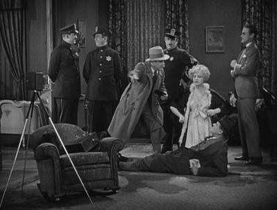 Roxie calls Amos, who comes running and phones the police. They and a male reporter show up. Amos tries to take the blame, but the sly assistant district attorney (Warner Richmond) traps Roxie by saying Amos said she did it. She goes ballistic, accusing her husband of ratting her out. Of course, he did no such thing, and the heartless Roxie realizes she’s been set up. Nonetheless, the reporter is thrilled by her seductive good looks and has his cameraman pose her as remorse itself while a cop stands in for the dead man on the floor.