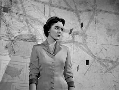 Bob momentarily balks at having Pat, who needs to do what her elderly father can’t, descend with him and Ben into the nest to survey the damage, but she quickly dismisses his concerns: “There isn’t time to give you a fast lesson in insect pathology.” Pat’s introduction echoes that of Bella Darvi’s similar prodigal daughter of the savant in Sam Fuller’s (1954): the first sight of her is a sliver of leg in a pump, descending a ladder, astounding the meatheads before quickly and simply laying claim to her place on the team. Fuller’s tone was satiric where Douglas is businesslike, for like Pat he can’t stand distractions and pointless arguments. It could be one of the most significant early rumbles of feminism on film: Pat does scream queen duty early on but after that is a model of cool and purpose, and as much as it makes Bob look gassy, he’s forced to concede Pat’s point. After that it’s never mentioned again. This aspect is perfectly contiguous with the film’s survey of a new landscape where the pace of change, and evolution itself, is outpacing comprehension. George Worthing Yates, who wrote the original story for Them!, would return to the same feminist slant, if more awkwardly, on It Came From Beneath the Sea (1955).