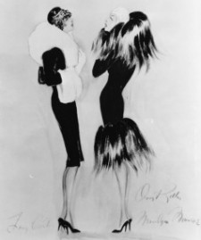 Kelly also liked to push the envelope of the stuffy 1950s. His designs for Auntie Mame allowed him to create flamboyant, colorful outfits for the outsized personality of the main character, a visual tweak to the Establishment that defined Mame Dennis. He was determined to bring all of Marilyn Monroe’s sex appeal to the screen in Some Like It Hot. Jane Fonda, who worked with him on some forgettable movies, is interviewed about this film and says that despite not being gay, she was transfixed by Monroe’s pregnancy-swollen breasts, which Kelly saved from censorship by some strategic beading.