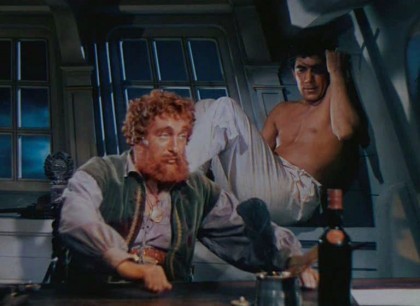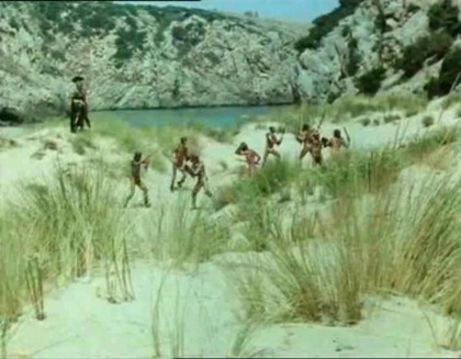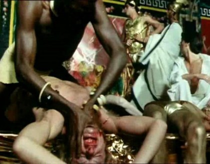 Friends of the emperor are collecting attractive young men for his sport whilst voyaging to his private island, and this wayward trio have been imprisoned on the ship of rich merchant Lichas (Alain Cuny). During the course of the voyage, Encolpius spies on the master of the ship and his wife Tryphaena (Capucine) in their floating pleasure dome. Caught in the act, Encolpius is forced to battle Lichas, who dresses as a gladiator and fights well. Instead of killing the younger man, Lichas prostrates and ravages him. This twist leads into pansexual romps that finally result in Lichas, smitten with Encolpius, engaging in a marriage rite with him, under his wife’s seemingly approving gaze. But when the ships reach the Emperor’s island, the passengers are just in time to see the Emperor (Tanya Lopert) surrounded by assassins sent by a usurper. The Emperor commits suicide before they can kill him, so they board Lichas’ ship and when he protests their actions, he’s swiftly and brutally beheaded. The prisoners are all dragged off to serve new masters, but Encolpius and Ascilto manage to give their captors the slip and traverse the rocky, unfamiliar shore they’ve been stranded on.