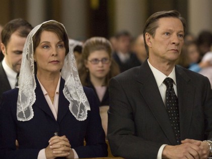 A recurring note is that all of Edward’s sexual encounters are bitter jokes—with Laura, who chickens out of their first night together; with Clover; with Hanna; with Laura again many years later, a one-night tryst that is photographed. The photos are sent to Clover, whose rage makes an introverted, professionally paranoid man even more so. Sex, the surrendering of control, is the weakest link in the security chain. It destroys Fredericks and others. Yet Edward is seen first as a young man performing as Buttercup in a collegiate performance of HMS Pinafore; ironically, it’s the freest and easiest he ever seems, the act of hiding in gender ambiguity a short-lived liberation.