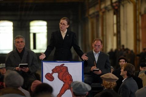 Thus begins Jung’s test. Márko goes across the street to an apartment where a surveillance team is set up to watch Jung, record his phone conversations from the tap placed in his telephone handset, and listen to his conversations with the informants he receives through the microphone hidden in the ceramic angel. The test proceeds uneventfully, and Márko is ready to call an end to it. The official test-runner, Emil Kulcsár (Péter Scherer), a nerdy, by-the-book member of the team who seems to idolize Márko, argues that they are required to watch the subject for 12 consecutive hours. Márko is dismissive of Kulcsár, consistently failing to remember his name, and wants to flaunt regulations so that he can get on with having a nice Christmas at home. That delightful possibility is definitively quashed when an unknown woman (Gabriella Hámori) arrives at Jung’s home and makes passionate love with him as the microphones and embarrassed spies catch every sigh.