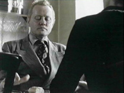 All these ins and outs could be mistaken for the operations of cyborgs engaged in some kind of arcane game if it weren’t for the ever-elusive human factor, the way personal weakness, so theoretically unpredictable and yet so often exactly predictable, can infect any enterprise. For the spymasters of both sides, their webs are extensions of their personalities. These men’s whole lives have become entwined with their work, to the extent that George’s wife was seduced by a traitor. For the English side, The Circus is a functioning asylum for outdated Empire men, Etonian losers, colonial riff-raff, and uprooted Eurotrash. They exist to be easily shot full of holes by any passing fanatic. The monkish czar of the KGB, known only as Karla (played in tantalizing, wordless snippets by Patrick Stewart), gains great menace and power from his position in a totalitarian system, but is eventually rendered lost and desperate within that system by his one, human lapse. If George is the hero, and Karla the villain, it only comes out in the fine details; George merely split with his wife, where Karla sent his to the Gulag. Amongst these paranoid, professionally existential, often borderline disreputable people who become spies, sex and money are eternal currencies, whilst the most successful and powerful are those who largely avoid these temptations. In this, the enigmatic Smiley and his great nemesis Karla seem to stand ahead of the pack, and the battle between them is enacted not only in institutions but in the bedroom. Smiley has to contend constantly with the open secret that his estranged wife Ann (Sian Phillips) had an affair with Bill Haydon, and Haydon’s own omnivorous appetites also long ago included Prideaux as his partner in both business and pleasure. In between them are people with a kaleidoscopic range of grubby rendezvous and amusing foibles. Ricky Tarr, a kind of extremely low-rent James Bond wannabe, plays the noble romantic with Irina, but he’s actually a seedy bigamist who only accidentally helps Smiley through a ruse involving one of his wives he has a kid with.