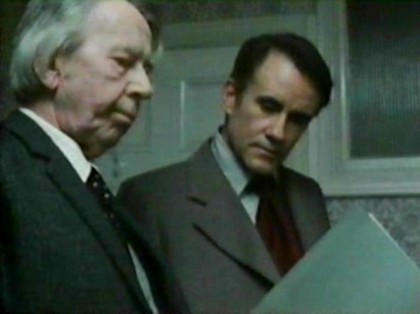“George Smiley, the Chelsea pensioner himself, god help us, fought every war since Thermopylae, hot, cold, and deep frozen!” is how Connie describes Le Carré’s favourite hero, who had evolved from a shadowy, unctuous-seeming functionary in his early novels (he was played by Rupert Davies in Martin Ritt’s strong film of The Spy Who Came in from the Cold, 1963, and by James Mason, though the character was renamed, in Sidney Lumet’s The Deadly Affair, 1965) into a doggedly admirable, if still, when necessary, a chilly, expediency-favouring hero. Smiley’s own degradation and casting out of the fold of “The Circus,” as the headquarters of the service is known to the intelligence fraternity, proves to be the first act in the long odyssey by which he gains revenge on the traitors and enemy spymaster responsible for making much of his service a living hell of constantly watching agents being caught, tortured, and shot. At the outset of Tinker Tailor, Smiley’s boss, the emaciated, dying, reclusive “Control” (Alexander Knox), is desperate, convinced there’s a mole in the higher echelons of The Circus. He brings in one of his aging, but still stalwart reliables, Jim Prideaux (Ian Bannen), to meet with a Czech general who supposedly can supply the name. But Jim is shot and captured, and Control, Smiley, and everyone else linked closely to them is either forcibly retired or exiled in unrewarding posts.