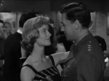 Not mentioned in the film is a telling touch from the novel, in which some of Eleanor’s monstrosity is revealed to be the product of sexual abuse by her own father, a deeply buried mandrake root of evil based in the desire, like that of the ancient Pharaohs of Egypt, to keep power entirely within a gene line through incest. This last aspect, constantly lurking under the dense Freudian-mythical matter at the heart of the human drama, does come out when Eleanor, with her son seemingly under perfect slavish control, kisses him in definite erotic prelude. There’s scarcely a taboo untouched in The Manchurian Candidate, befitting a film about the utter perversion of contemporary communal life by forces within it and working upon it. Thanks in part to Harvey’s dynamic if, unavoidably, often unpleasantly phlegmatic performance, “lovable Sergeant Shaw” is one of the great cinematic characters, so uncommon in his barely suppressed fury layered over a very deeply repressed sexuality, his stringent honesty and astringent snobbery, his detachment from and contempt for the usual signifiers of healthy all-American identity, as well as his mother’s relentless perversion of the bodies both politic and familial. He has much in common with the tortured young heroes of Frankenheimer’s early films, with his feelings of exclusion from the run of everyday life, his bitterness towards his parents, and his status as puppet being manipulated for other people’s ends. Sometimes he seems like the barely human cyborg he’s been programmed to be, except that a constant undercurrent of virulent trauma and raw feeling sometimes slips his façade, as when he drunkenly narrates to Marco the story of his one busted romance, with Jocelyn (Leslie Parrish), the good-natured daughter of her mother’s political enemy, Senator Thomas Jordan (John McGiver).
