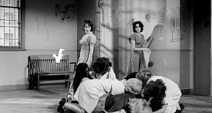 As equally trenchant, and more easily discernable, as Cathy’s mask is the self-made Klan hood that Trent dons to rant racist rhetoric and chase down one of his fellow black patients, presenting the feverishly sick spectacle of the frightened older man being pursued by the whipped-up loonies led by another black man wearing the ghoulish camouflage of race-hate (“Let’s get him before he marries my daughter!” he shouts). Johnny’s choice to identify himself as Forrest is canny not merely in how it taps into both Stuart’s and Trent’s delusions, but also in explicating how conjoined the neuroses of war, caste, and colour are in American society. The ritual form of Johnny’s encounters with his three quarries is to satiate their fantasies, allowing them to have moments of lucidity presaged by dreams that evoke their buried traumas tangentially. Fuller introduces a self-reflexive note by having the dreamers remark that they have their dreams “in colour,” thus acknowledging that their world is an inauthentic, black-and-white one. Trent’s dream of tribal rituals with masked dancers is accompanied by his voiceover disquisitions on the dates of the crucial Supreme Court desegregation decisions—associating legal rulings with tribal lore: the political is primal—and memories of vicious assaults by clansmen. When the madmen have moments of clarity, Johnny’s pursuit of his truth comes constantly at the cost of his inability to hear their crucial stories; his specific objective is finally distinct from broader truths he’s not interested in discerning.