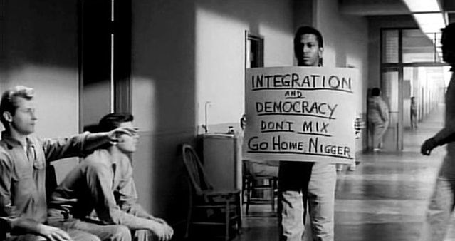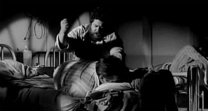 Each of his quarries in the hospital is enacting a trauma that is linked to the others. Stuart’s mind snapped after he returned from Korea, where he’d deserted and adopted Communism, the first time in his life he’d felt any pride in himself after being raised by racist redneck parents. The example of an heroic, genuinely patriotic POW finally brought him back to the fold, but he was still ostracised on return and took refuge in the fantasy of being a Southern military hero, one who leaps to his feet in joyful salute when Johnny poses as Nathan Bedford Forrest, Stuart’s commander and also the founder of the Ku Klux Klan. That works as well, if differently, with Trent, for he, in his psychosis, spouts white supremacist rhetoric and claims himself to have founded the Klan. Boden’s mind was broken by his part in inventing the atomic bomb. Between the three of them, they suggest the whole state of postwar America has been defined by deranged, fractious responses to the Age of Anxiety, with roots going back to the Civil War and beyond and resolving logically in the mass paranoia of the Cold War, racial strife, and the nuclear era. Suddenly it starts to look a whole lot like Fuller had his entire country in mind when quoting Euripides. “The last egghead I had in here was Ben Franklin!” snaps an aggressive orderly about another patient as Johnny enters, and one doubts the reference to the brainiest of the Founding Fathers is accidental.
