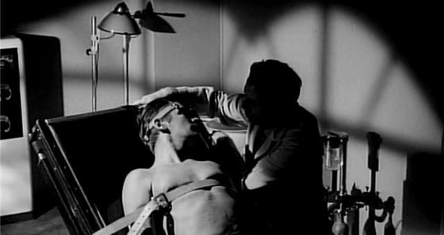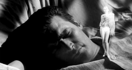 Johnny’s subsequent emotional coercion of Cathy finally forces her to present the false story to the police, and Johnny assaults the psychiatrist who interviews him, landing him squarely where he wants to be. In the hospital, he encounters a panoply of bizarre patients, like rotund opera freak Pagliacci (Larry Tucker), and some equally disturbing staff. He works his way into the lives of the three men who witnessed the murder. Stuart (James Best) is a hick who believes he’s Confederate Cavalry General Jeb Stuart; Trent (Hari Rhodes), an African-American student who went crazy after being used as an integration guinea pig; and Boden (Gene Evans), a former nuclear scientist who’s reverted to a childish state. Just how tenuous Johnny’s hold on to sanity himself is soon evident—when he’s been sedated and locked up even before hospitalization, he hallucinates Cathy in her performing persona, making taunting come-ons and resting on his shoulder like a psychosexual Jiminy Cricket.