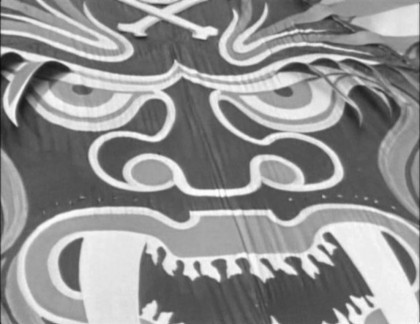 The effects are often ropy, from the camera speed effects used to give action more pep throughout, to the mid-film surrealist dream where distorted faces and stock footage commingle to wonderfully tacky effect, yet it’s precisely the film’s bald-faced lack of hype that’s part of its unique style. For example, early in the film, De Quincey follows Ruby Lo out onto the street, only for a banner to drop unexpectedly into the frame, signalling the eruption of a tong battle. The soundtrack is filled with the screams of women and children and the rattle of machine guns, and Ruby Lo dashes into a doorway, only for a sliding panel to drop, stopping De Quincey from following and leaving him outside on the completely deserted streets. Trying to break into Wah’s office, he’s assailed by a suddenly looming vision of a dragon’s face, which proves to be only a menacing kite, which he then cleverly uses to hitch a rope to the roof so he can penetrate the building.