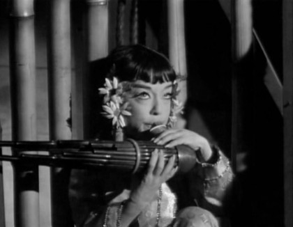 De Quincey’s main helpmate is the perverted image of a courtesan imposed on the midget Child, whose own blackly comic sensibility marks her out as one of cinema’s rarest characters. Completely immune to emotional degradation or intimidation, she giggles over the most sadistic designs and sighs laughingly over her fate, having once been the real Lin Tang’s “baby doll” before he sold her to a lettuce farmer in Salinas: “I pick lettuce long time!” When Lo Tsen cries out to De Quincey from her cage for food, Child mocks her: “She crazy. They fed her last week!” And when De Quincey, trying to horsetrade with Child, offers her “her life,” she retorts, “No good. What else you got?” In a particularly nightmarish moment, Gilbert is shown the body of a girl who’s been drowned in a tank with a rock tethered to her neck. The undercurrent of honest brutality in the film helps makes the urgency of Gilbert’s mission more than theoretical.