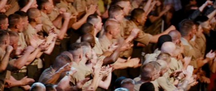 It’s heavily suggested that Paddy’s domestic violence was caused by PTSD after his own military service, and Tommy makes many of the same mistakes, acting with surly, unforgiving aggression towards both father and brother. Yet the film gets off on the sight of soldiers coming to serenade Tommy at his bouts with the Marine hymn. The film outlines the good cause Tommy and Brendan have to be angry with their father, and yet O’Connor spares no effort in wringing our empathy with the pathetic, shambolic old man, as when he’s rebuffed by Brendan outside his house like a poor, panting, lost dog as he tells his kids, who don’t know Paddy at all. Later, the film builds this up to a note that’s both ludicrous and yet kind of affecting when Paddy, exhausted by Tommy’s cruelty, falls off the wagon and screams lines from the talking book version of Moby Dick he’s been toting throughout the film in Tommy’s face, stirring something like filial pity from Tommy at last. O’Connor wants to depict catharsis here, but he fails to gain it precisely because he’s copped out of any actual reckoning with the emotional damage both men have suffered and inflicted. The lack of any essential irony or even genuine consequentiality to this background detail finally hurries up a process I’ve noticed in other recent films, like Jim Sheridan’s dreadful Brothers (2009), of turning the familial and spousal abuse of PTSD-afflicted soldiers into an equivalent of a battle scar—ugly, but part of the job of the good loyal God-fearin’ mom-and-apple-pie-lovin’ soldier.