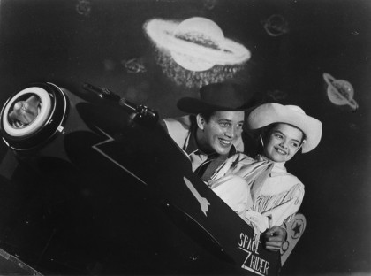 It is in these final scenes that Scott’s attempts to reclaim his life and his privacy from the legions of curious people and probing reporters when he was, if small, still human-sized, completely fall away and move him—and us—into a contemplation of existence. It’s not entirely clear, but it appears that Scott will keep shrinking to the size of an atom, the perhaps logical end for exposure to atomic radiation, or disappear altogether to join the cosmic dust from which the universe sprang. Arnold ends his film with a vision of our galaxy, the alpha and omega of humanity. Don’t we all feel small in the face of that!