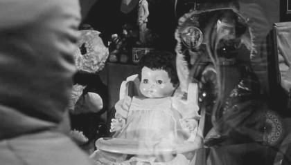 In Scott’s case, his body becomes one of a child, reduced to dependence and an infantile relationship with his wife. When he shrinks to the size of a doll, he takes up residence in a dollhouse, a feminizing situation, with his wife’s face looming over him like the overbearing mother’s in Woody Allen’s segment of New York Stories (1989). When he becomes even smaller, he must rely on primitive instincts and strategies to survive in a once-familiar but now alien and threatening environment.