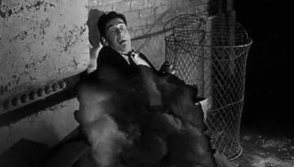 Arnold’s brilliant use of oversize furniture and props, as well as optical printing to put Scott in the same frame as the enormous beings who surround and threaten him, create a convincing world through which we can empathize with Scott’s struggle. I was particularly taken with the gentle cat for which the Careys show obvious affection, and its transformation into a dangerous beast chasing its own master seems the perfect metaphor for the destructive force of nature human beings unleashed upon themselves. With global warming filling our skies with the moisture of melting glaciers that cause mammoth hurricanes and biblical floods, the timeliness of The Incredible Shrinking Man cannot be overstated.