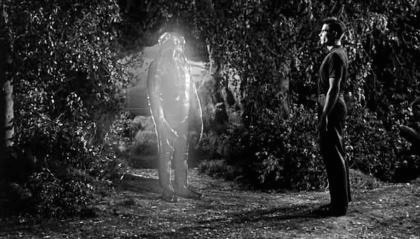 But Forrester is dragged from the truck by a mob of men desperate for transport, beaten and left in the street, along with a wretched flimflammer (Ned Glass) who’s found to his horror that money doesn’t mean any to the mob in the street than the vague promise of science to combat the terror. Forrester finds signs that Sylvia’s bus had the same fate, and he begins an increasingly frayed and shambling odyssey around the town as the Martians perform a calculated blitzkrieg to destroy it, following a breadcrumb trail of clues and the memory of Sylvia’s story in searching for her in churches where exhausted, broken, hopeless people give themselves up to prayer and suppliance before fate. The War of the Worlds tried to do a lot with relatively limited resources, evident in the cast populated with lower-order contract players and B-movie stalwarts, depictions of disorder, evacuation, and worldwide calamity that require extras to mill about, and a mid-point montage consisting of stock footage pasted together with a fair amount of invention and given inimitable aid by Hardwicke’s majestic narration. Whenever Hardwicke speaks you never doubt the world is fighting for survival and losing. And yet The War of the Worlds contains more of a sense of moment and grandeur than movies that cost fifty times as much have conjured. Leith Stevens’ excellent score with its plangent strings and sonorous flourishes helps in that regard.