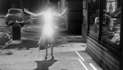 Margo, of course, has played the star so long that she can display artistic temperament in her sleep. The problem with that particular script for a woman, however, is that it has a shelf life. Even extraordinary talent will only go so far once a woman has passed her peak of physical beauty. When she sees Bill off to California, Margo warns Bill not to “get stuck on some glamor puss.” He chides her for being childish, to which she responds helplessly, “I don’t want to be childish. I’d settle for just a few years.” His increased irritation only pushes her further, “Am I going to lose you, Bill? Am I?” And like the proper denouement to a truthful scene played for high theatricality, Bill takes her in his arms, tells her “As of this moment, you’re six years old,” and starts to kiss her. Their scene is interrupted by Eve handing him his airline ticket, a suggestive statement of theme that is itself theatrical.