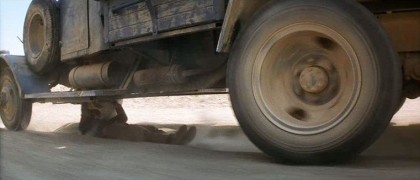 The sequence that follows is the best action scene of the series and one of the best of all time, one which simultaneously sticks tongue in cheek and yet hews to a careful extrapolation of cause and effect, both absurd and yet done in just such a fashion that it remains corporeally believable. Indy turns the seeming advantages of the Nazis against them, swerving the truck to keep others from firing at it lest they hit the men in back, keeping the chase going at high speed so that everyone’s off-kilter, and shunting aside the pursuing vehicles with malicious, boyish glee. Liberated from all care about what havoc he wreaks, Indy cuts loose with a new relentlessness, stoked in him by these people trying to bury him and Marion alive, and refusing to be cheated again by Belloq. The climactic stunt of Indy’s climbing under the truck and then being dragged behind borrows directly from Stagecoach (1939), whilst others clearly reference the train climax of How the West Was Won (1962), and, as mentioned, there’s that Buster Keaton influence. The best moments of this scene, like when a bloodied Indy finally resurges to hurl the toughest German out through the windscreen to have the truck run over him, hands and legs splaying just into view in a pure Road Runner moment, are both comic and physically dynamic. But there’s a sense of actual physical pain in the scene, as when Indy cops a bullet in the shoulder that leaves his blood dripping down the glass, and when one enemy repeatedly pounds his wound to debilitate him. The subsequent vision of a badly hurt Indy wincing as Salah hugs him good-bye and seething in pain as Marion tries to minister to him is perhaps the film’s cleverest comic coup in subverting the familiar unbreakable action hero: this job hurts like a son of a bitch. In spite of the many films that owe a lot to the Raiders template—Tomb Raider (2000), Van Helsing (2002), the Pirates of the Caribbean film—it’s fascinating how few of them have actually grasped how this specific mixture of the ridiculous and the realistic made the model work.