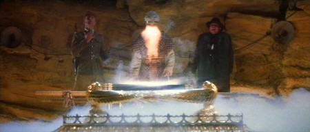 Lucas, who had been reading , attempted not simply to use Campbell’s theories to build old-fashioned narratives, as he’d done with the Star Wars films, but to make them the conceptual linchpin of his film. This worked by deliberately creating a semi-contemporary character who traces ancient artefacts, and in the process, reproduces the experience of the most mythic heroes, seers, demigods and prophets—deciphering riddles, penetrating innermost mysteries to snatch totemic treasures, stealing fire from the gods. The links of past to present infuse the Indiana Jones series with a power well beyond most of its successors, at its most overt here, where the Ark is a prop nearly as important as the hero—the title mentions it, not Jones, and it, rather than he, delivers the villains their comeuppance.