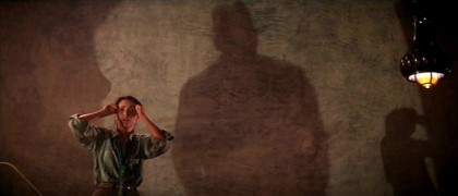 Raiders still winks at the way the cliffhanger adventure narrative is constructed, full of narrative conveniences, elided explanations, and deliberate anticlimaxes. Much of the opening sequence is, on the face of it, nonsensical. The film provokes the audience to provide believable reasons why Indy has trekked inland with pack mules and criminal assistants when he’s got a floatplane waiting nearby, and why on earth that plane’s pilot would bring along his pet snake. Indy’s snake phobia, later a compulsory character trait, is here a wry punchline, as Jones is utterly distraught at having a harmless lizard crawl over him: “C’mon, show a little backbone, will ya?” the pilot (Fred Sorenson) mocks the man who just performed astounding acts of courage and endurance. Raiders is not always so far from Lester’s antiheroic spirit in moments like the famous “shooting of the swordsman,” a fiendish, knowing, almost MAD magazine-type gag, and it remains jolting, funny, and slightly appalling at each viewing. But such eccentricities are carefully dovetailed within a film that weaves integrity of style through such elements as Douglas Slocombe’s richly accomplished and technically brilliant photography, which sustains both a fresh, physically solid lustre whilst also recreating aspects of expressionism and the overtly stylised back lot tradition of Hollywood adventure.