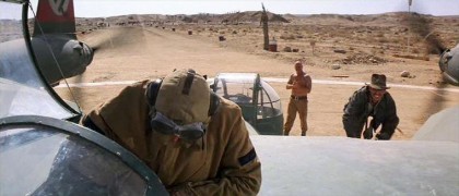 Raiders’ historical setting didn’t just allow the filmmaker to play with retro tropes, but also offered a chance to escape the killjoy angst of the ’70s, though there’s still a definable edge of the mistrust of officialdom in the portrayal of the feds who commission Indy’s quest. The film’s final joke riffs on a main theme of Close Encounters of the Third Kind (1977), where a source of inestimable wonder and dread is last seen being stashed away in a colossal warehouse under bureaucratic auspices so the world might forget such destabilising influences exist. This scene itself is almost a meta-commentary on the film’s own driving principle. Trucking in the Nazis as baddies and making Indy a premature antifascist, however, signals a less cynical sensibility. The results of Indy’s gallivanting through the streets of Cairo combating Egyptian goons initially skirts the endemic racism of much of the old pulp pantheon, but other aspects, like Indy’s dogged good friendship with Salah and the way the Egyptians who fill the background slowly shift from being Nazi tools to active supporters of Indy, give the film some links to the egalitarian spirit of WWII-era movies like Sahara (1943). Salah likes reclaiming the heroism stolen by imperialists for themselves, singing Gilbert and Sullivan’s anthems of official heroism but freeing them from nationalist specificity: he is the “monarch of the sea”; “A British man is a soaring soul” describes himself, Indy, and Marion. Moreover, as in subsequent episodes, the sense of underlying truths in the world’s mythical pantheons demands a slow adjustment to a deeper empathy and understanding of what those pantheons imply about the human condition and its origins.