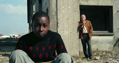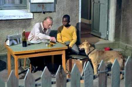 Soon, Marcel sees an African boy (Blondin Miguel) hiding in the water under a pier. The boy, Idrissa, is the only one of a group of refugees hiding in a container bound for England to escape police capture, and his case has been headline news in Le Havre ever since. Marcel buys a sandwich and bottled water and leaves them on the wooden steps of the pier for the fugitive. Soon he finds the boy hiding in Laïka’s doghouse. Marcel tries to find Idrissa’s parents and finds he can again rely on the kindness of his neighbors to help him hide the boy. He locates and visits Idrissa’s grandfather, locked up in deportation center, and learns that Idrissa’s father has been killed and his mother is established in London. Marcel determines to get Idrissa to his mother, but he will have to pay a hefty fee to the smuggler and evade the police, led by Inspector Monet (Jean-Pierre Darroussin), who has been tipped by a nosy neighbor (Jean-Pierre Léaud) where Idrissa is hiding.