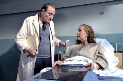 Dark clouds are coming Marcel’s way, however. Arletty has a sudden pain in her stomach; the doctor (Pierre Étaix) at the hospital tells her she’s a goner. Characteristically, Arletty is more worried about what will become of Marcel. She asks the doctor whether there is any hope, to which he replies that miracles do happen. “Not in my neighborhood,” is Arletty’s rueful reply. Marcel is told nothing about the seriousness of her condition, only that she will be in the hospital for a while for treatments and to stay away. The neighborhood people, knowing more about Arletty’s condition than Marcel does, sympathize with him. Claire comes by with home-cooked meals, and the barkeep Yvette (Evelyne Didi) gives him drinks on the house.