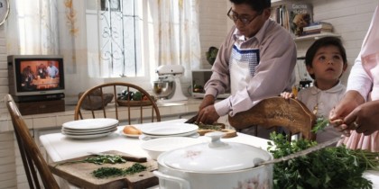 This description makes this family seem thoroughly loathsome, but there is something so easy about their relationships—and Andrés is the wonderful heart of the family that keeps them human—that their decline seems, despite all odds, rather sad. It would be easy to focus on the racism, privilege, and petty injustices served upon Wilson (who, by the way, claims his wife is worse than Carola), but Valvidia ensures that we see the beauty, too. The lush grounds, filled with calla lilies for centerpieces and enormous, spreading greenery that was grown from seed, emphasize a certain aesthetic graciousness that can’t be ignored easily. Valvidia uses a rather odd, restless camera to envelope us in their story. The slow 360-degree pans of each scene almost never cease, and his crane shots allow us to see the house as a singular entity in its immediate and distant surroundings. He frames the inhabitants of the hacienda staring out of their tastefully barred windows, pulling his camera back to emphasize their isolation from the reality around them.