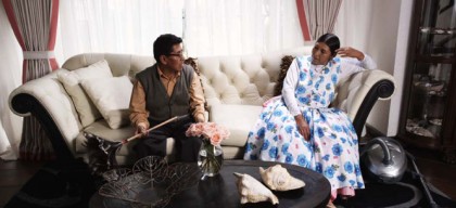 The movie takes place almost entirely within the grand old hacienda in the posh Southern District of La Paz in which matriarch Carola (Ninón del Castillo) grew up and is just about done raising her three children. Patricio (Juan Pablo Koria) and Bernarda (Mariana Vargas) are college students, but Carola must have had a change-of-life baby with her now ex-husband. Andrés (Nicolás Fernández) is an imaginative 6-year-old who follows Carola’s native butler Wilson (Pascual Loayza) around, imitating everything he does and asking him, Marcellina (Viviana Condori) the maid, and a local farmer who sells the household cheese (“from the Altiplano!”) through the barred gates of the hacienda what they wanted to be when they were his age.