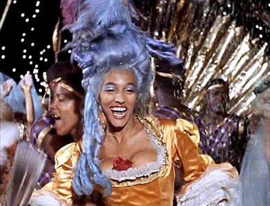 The film reaches a peak during the actual Carnival parade. Orfeo, dressed in gold like a Greek god, is the major domo of his town’s dance crewe whose theme is the rising sun and who dress rather ironically in colonial garb. During this celebration that ushers in a period of sacrifice leading up to Easter, Orfeo and Eurydice will enact another such sacrifice. Eurydice has seen the figure of a man dressed as Death (Ademar Da Silva) before the parade; frightened, she runs to Orfeo, who promises to protect her always. During the parade, Eurydice has taken Serafina’s place; veiled, she can dance with Orfeo without Mira being the wiser.