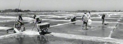 Shot in widescreen black and white by Mauro Pinheiro Jr. to emphasize the extrareality of the situation, this film is absolutely stunning. Every frame is carefully composed, like an illustration in a book of fairy tales, yet the film also offers some wonderful discoveries of life in this region of Brazil (Pontal do Massambaba, near the district of Monte Alto in Arraial do Cabo). I was fascinated by the salt “farms” and the simple way the workers extract the salt from the water by spreading the water to aid evaporation and then shoveling the salt into wheelbarrows.