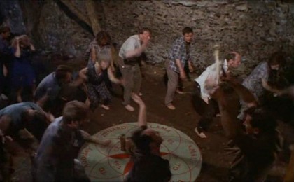 Hammer Studios first moved into making films in the cinefantastique genres with adaptations of in the mid ’50s. But Kneale had surprisingly little to do with the studio, except for adapting his own work with the 1957 film The Abominable Snowman, and penning the script for this ripping mid-’60s work that sports one of the House of Horror’s few imported star turns, in the person of Joan Fontaine. Director Cyril Frankel’s name doesn’t conjure many associations, which perhaps partly explains why this film has fallen under the radar: after initial film work, he worked chiefly as a TV director. But The Witches is a fine slice of classic British genre fare offers much the same deeply neurotic mood of repression and explosive release that also marks out other great, thematically similar British horror films like Night of the Eagle (1961) and The Blood on Satan’s Claw (1971). It anticipates, in many ways, The Wicker Man’s ironic contrast of idyllic hamlets and uncanny threats, if without the calculated inversions of story expectations, and looks forward to more modern studies on similar material like Wake Wood (2010) and the satiric landscape of Hot Fuzz (2007).