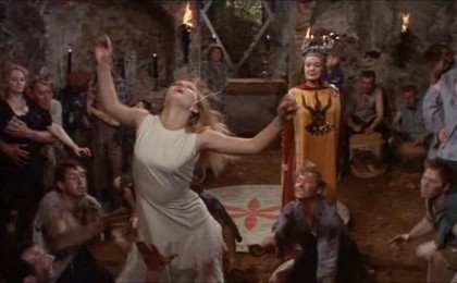 Witchcraft has often been one of the more neglected fields for horror films to draw on, in part because it often demands suggestion of unseen forces at odds with the declarative demands of genre cinema, and also because the modern mind is largely inclined to give witches the benefit of the doubt. Frankel doesn’t draw out fulminating sensuality and neurotic energy like Terence Fisher or Don Sharp at their best, but he does master the necessary rhythm of slowly composing strangeness leading into outright nuttiness. Whereas Fisher’s tackling of similar notions in the following year’s The Devil Rides Out is a lushly orchestrated spectacle, Frankel and Kneale’s film builds toward something like black comedy in its depiction of dowdy villagers suddenly hurling themselves with joyous, countercultural energy into satanic rites and orgiastic preludes.