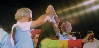 Regardless of your views, there is something to the assertion in the film that pot smokers are laid back and peaceful, something Marley and his band The Wailers always preached and lived. It is rather amazing to see footage of two violently opposed political groups in Jamaica come together briefly during Marley’s 1978 One Love tour and Prime Minister Michael Manley of the People’s National Party (PNP) join his rival from the Jamaican Labour Party (JLP), Edward Seaga, onstage at Marley’s urging. This gesture is even more extraordinary considering that extremists tried to kill Marley and The Wailers at his Hope Road compound only two years before when a planned free concert by Marley was coopted for political capital by the PNP, angering JLP supporters.